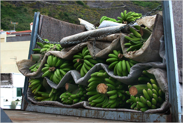 zur Abfahrt bereit. Bananentransport in el Caleton, Garachico