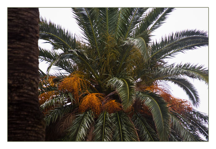 hohe Dattelpalmbäume mit Früchten, Cavalaire