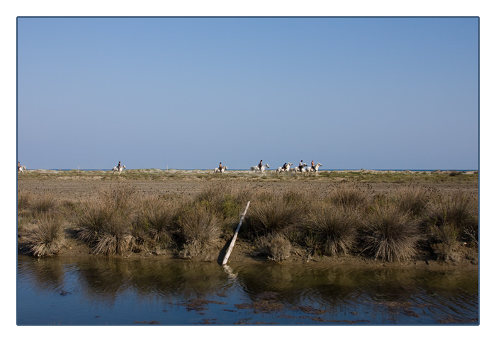 Ausritt auf Camargue-Pferden in Saintes Maries de la Mer (Camargue, Frankreich)
