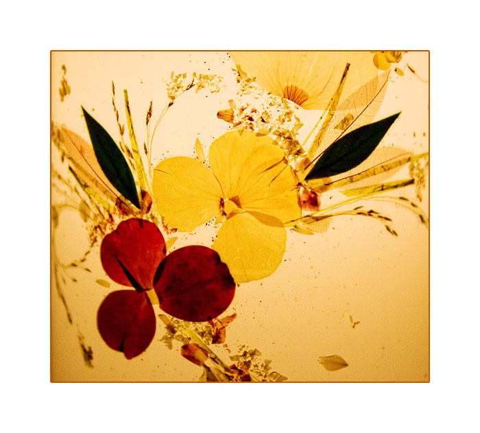 Papierlampenschirm mit eingearbeiteten, getrockneten Blüten im Papierfabrik-Museum, Fontaine de Vaucluse, Provence-Alpes-Côte d’Azur