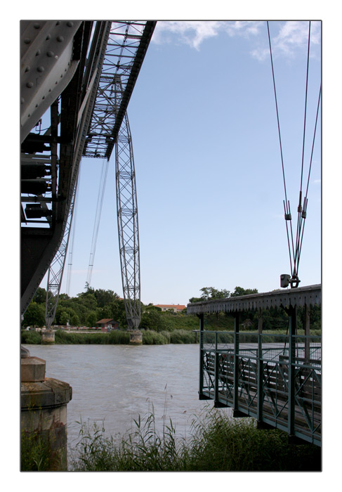 Stahlkonstruktion des Transbordeurs, einer Schwebebrücke über die Charente bei Rochefort