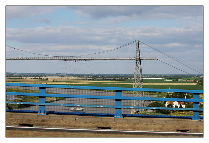im Hintergrund der Transbordeur, eine Schwebebrücke über die Charente bei Rochefort