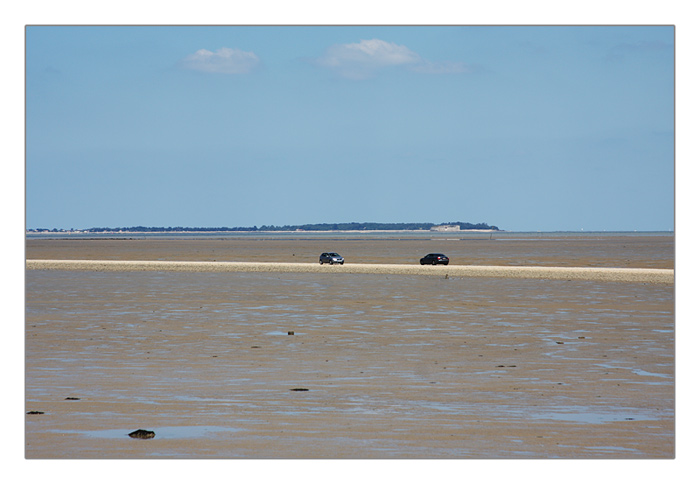 Strasse übers Meer (Passage) mit Blick zur Il Madame (Insel Madame) bei Ebbe