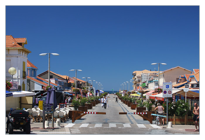 typische Touristenstrasse und am Ende das Meer, Lacanau-Ocean