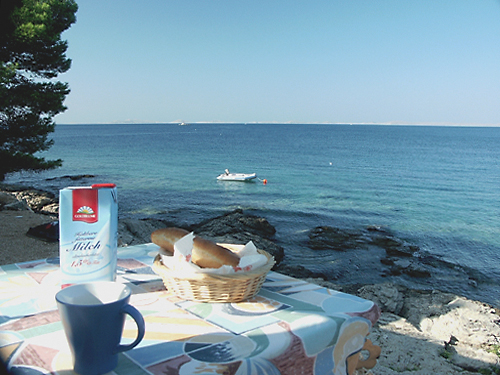 die Frühstücks-Terrasse direkt am Meer