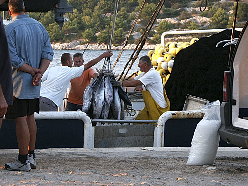 an manchen Abenden legt am kleinen Hafen ein Tunfischkutter an. Sein Fang wird an Hotels oder Gasstätten verkauft.