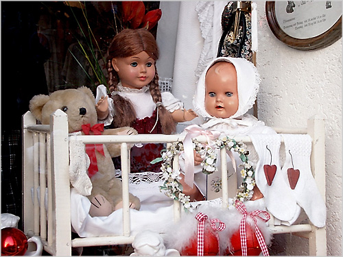 Kinderträume (Schaufensterdeko mit Puppen aus alten Zeiten)