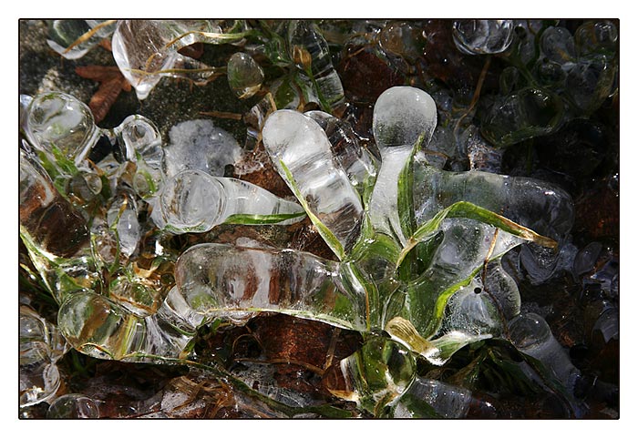 Eisgebilde um einen tropfenden Wasserhahn