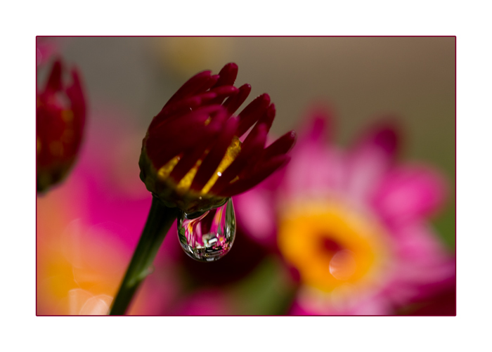 Regentropfen mit Blumen-Spiegelung