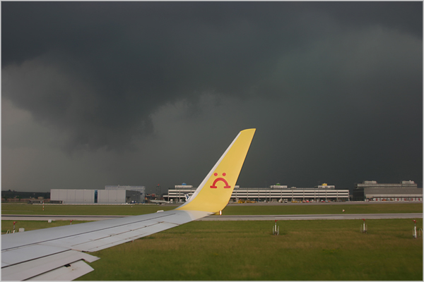 starkes Gewitter verhinderte den planmässigen Abflug.
